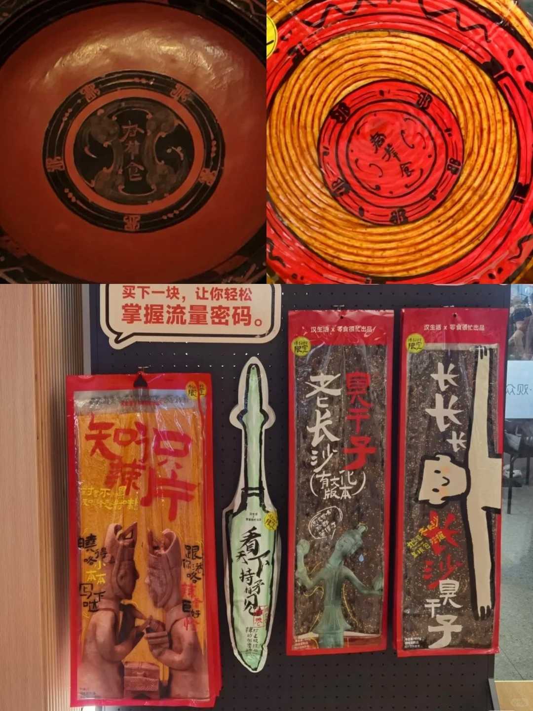 四楼的汉生活博物集很好逛!看到了零食很忙的大辣条, 好多人拍照 ,不得不说零食很忙是越来越出息了 联名 湖南 博物院出了文化版的大辣条 ,也是打进了一个很新的圈子。