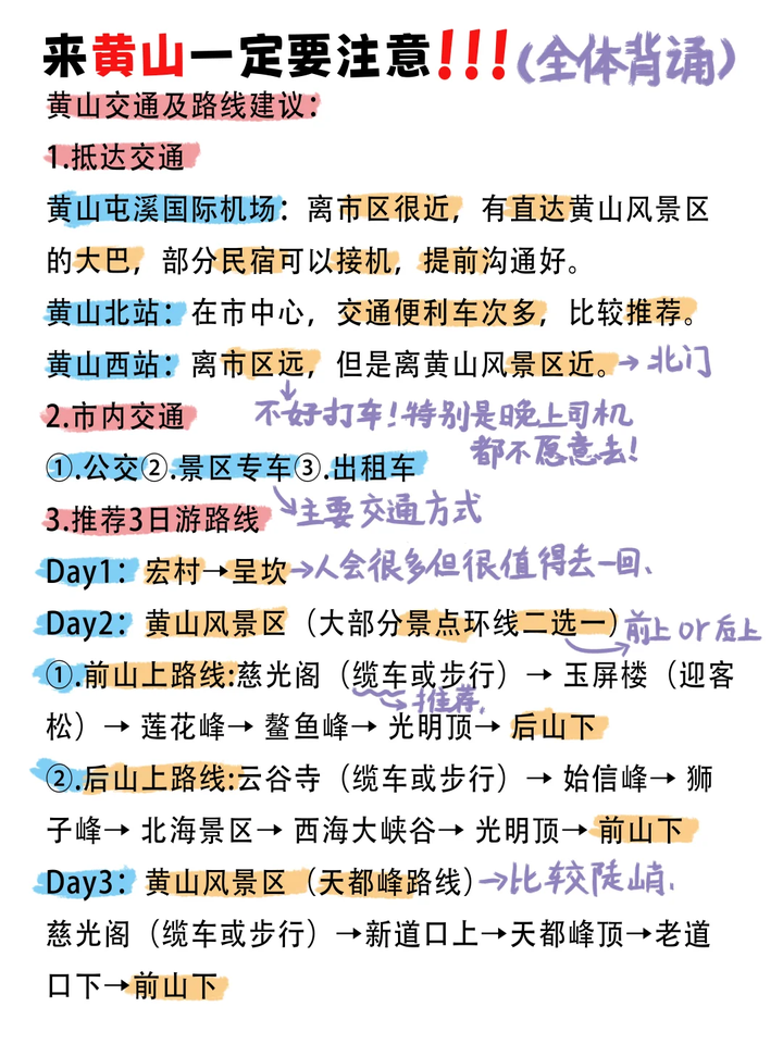 国庆旅游黄山篇来啦! 或许有没有国庆想去游山玩水的宝宝!马住这篇保姆级黄山旅行攻略!畅游黄山一篇全搞定包含交通+住宿+美食+注意事项等详细介绍天两晚路线(仅供参考):