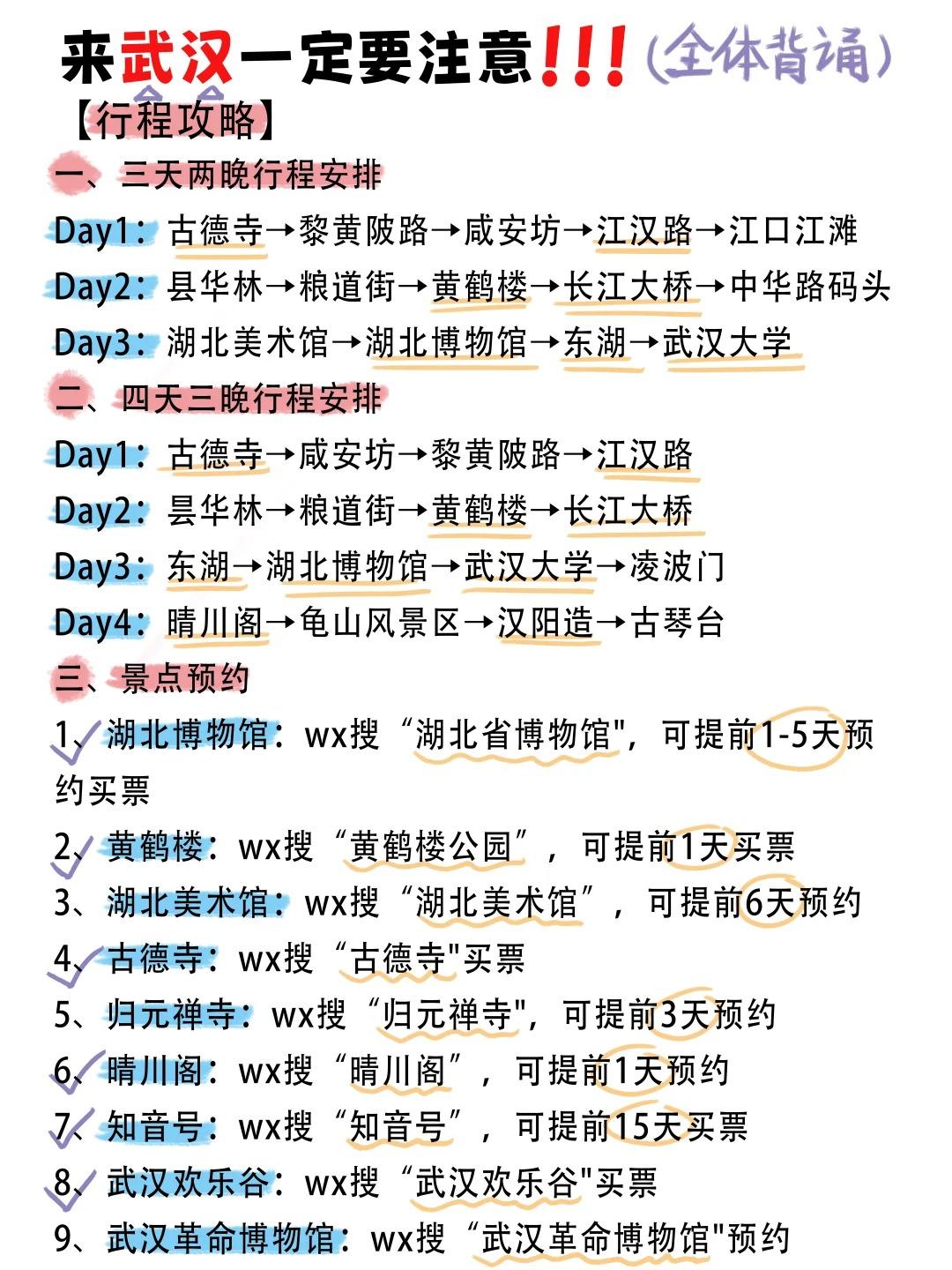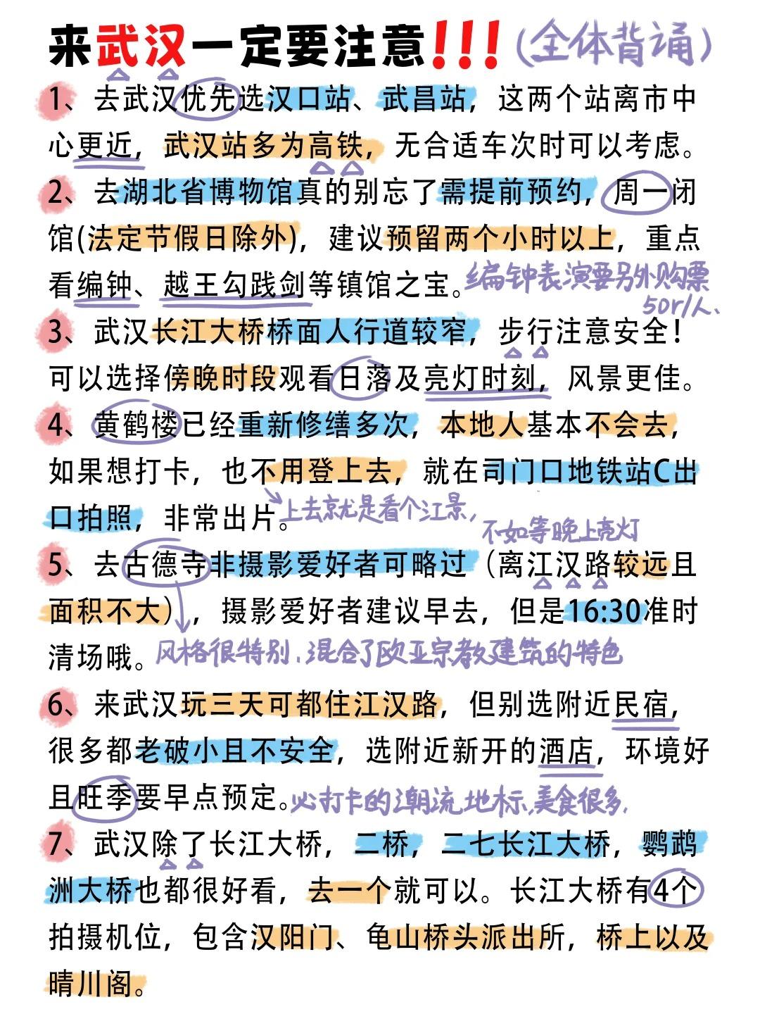 实用小贴士: 1、省博、江汉关务必提前约/2、住宿选择汉口江汉路/武昌黄鹤楼附近 3、