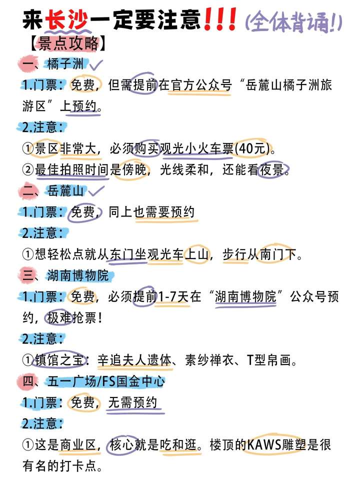 像岳麓山、橘子洲、博物院这类的景点记得一定要提前予约